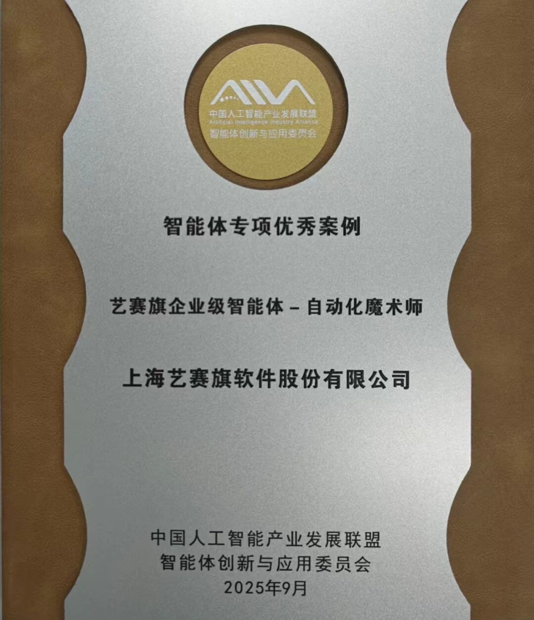 其中,在大会分论坛 “智能体创新应用论坛” 上,艺赛旗凭借 “企业级智能体 - 自动化魔术师” 项目,成功斩获 “AIIA 智能体专项优秀案例” 荣誉。